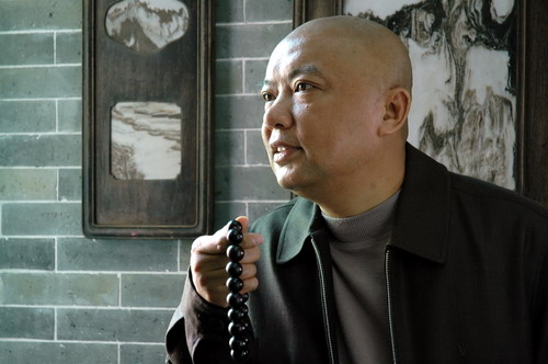 “大隱隱于市”。他常躲進“小樓成一統(tǒng)”(可以一、兩個月足不出戶)。在耕硯堂里手撥著念珠坐禪般地在明式的紫檀官帽椅上“默以養(yǎng)真”(篆刻章語),去覺悟心中的佛。漸漸人也變得“佛頭佛腦”,崇尚“大象無形”、“大美無言”之境界。怪不得他的畫沒有脂粉氣,乍看并不入眼,卻貴在似與不似之間。我曾自恃當年學畫比他早(當年他家還掛我的畫),對他的畫妄加評論,而他多是笑而不答。“誰享靜中緣”。以后方漸有所悟。他的畫不花俏,要靜心才看到妙著。急功近利、浮躁者是領悟不到、品味不出的。原來欣賞之樂還得先有一個嫻靜與明凈的心境。