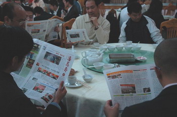 然而,天外有天,那敢自鳴得意。可況本身多缺點。不久前我帶上司報去向行家(新聞專業與美術設計專業的權威)討教。約會《羊城晚報》社社委、前要聞部主任、現任《新快報》總編張克眉(韜奮新聞獎獲得者)。熟不拘禮,她贊彈爽快;幸會中國最具影響力十大平面設計師之一、廣州市廣告協會會長黑馬大叔,他侃侃而談。多少金石良言,果有“勝讀十年書”之感!