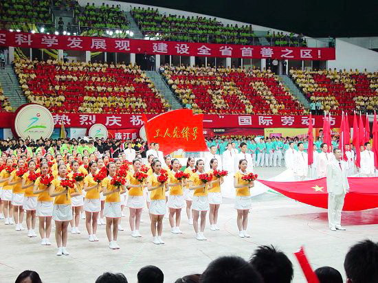 這屆職工運動會開幕式立意以群體互動為主,開幕式上,由我司工會參與組織的大型團體圖版展示組成的“工人偉大、勞動光榮”八個大字成為這個盛會的一大亮點。表達大會主題“全心全意依靠工人階級,全面落實科學發(fā)展觀,建設全省首善之區(qū)”中工人階級的骨干力量。