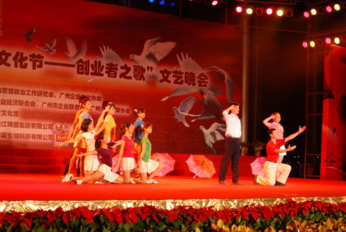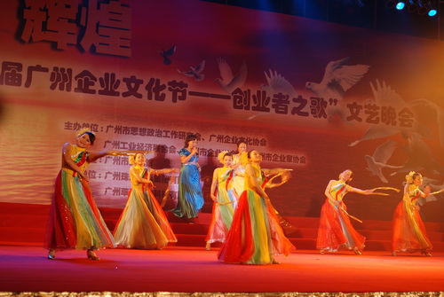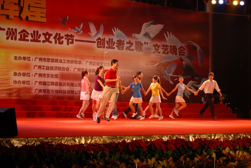 “廣州市企業(yè)文化節(jié)”是每年舉行的廣州市企業(yè)文化的一個(gè)盛會(huì),我司在多屆企業(yè)文化節(jié)上均有精彩的文藝節(jié)目參加展演并獲銀、銅獎(jiǎng)項(xiàng)。本屆以《創(chuàng)業(yè)者之歌》為主題的文藝晚會(huì)節(jié)目,均為廣州國(guó)際集團(tuán)有限公司、廣州日?qǐng)?bào)報(bào)業(yè)集團(tuán)、珠江啤酒集團(tuán)等大型企業(yè)集團(tuán)包攬。