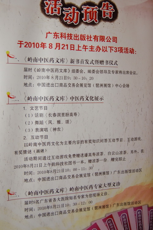 本屆書香節舉行的《嶺南中醫藥文庫》新書首發式,有專家義診和嶺南中醫藥文化展示活動。作為《嶺南中醫藥文庫》的入選單位,同時也是《文庫》序列中極少數完全由企業自主完成的單位,以“治咳養肺的潘高壽中藥文化”為核心的潘高壽傳統中藥文化受到上級領導和《文庫》編委的關注和重視,其中書香節的文化展示活動就由活動主辦單位委托潘高壽藥業負責策劃和具體操辦。