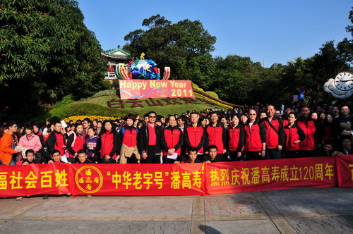2011年元旦,陽光明媚,在白云山山頂公園、在摩星之巔,潘高壽班子成員和全體員工在這里振臂高呼,放聲歌唱。廣藥集團董事長、黨委書記楊榮明,副總經理施少斌等集團領導親臨,鼓勁打氣,引吭高歌,喜迎新年。