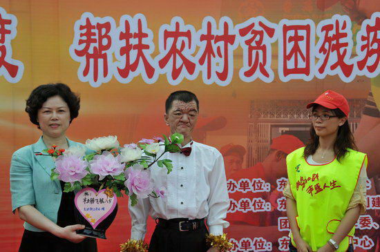 活動內容豐富——捐贈儀式、文藝表演、助殘義診等等,無不感人肺腑。潘高壽等公司弘揚濟人濟世、關愛社會的精神,向殘疾人奉獻愛心。鄭楠黨委書記代表公司向東環街殘聯捐贈了價值3.5萬元的保健品和飲料。同時,東環街殘聯回贈由該區殘疾人親手制作的禮花。此外,鄭書記參觀了東環街康園工療站,與殘疾人親切交談,送上暖暖的關愛慰問之情。