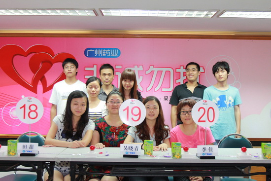 廣州藥業第一期“非誠勿擾”活動在廣州采芝林藥業有限公司舉行,我司團委與星群團委負責前期報名整理工作,有24位女嘉賓、9位男嘉賓參與活動,最終有6對青年牽手成功。現場130名親友團和觀眾見證了她們情緣的開始,并用熱烈的掌聲表示支持和祝福!