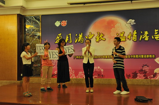 2013年9月17日,白云山潘高壽藥業(yè)公司舉辦“盈月滿(mǎn)中秋 溫情潘高壽”——2013年家在外未婚高校畢業(yè)生中秋慰問(wèn)暨迎新晚會(huì)。
