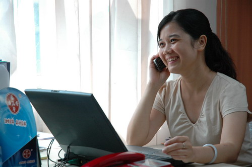 在解放中路618號(hào)五樓的產(chǎn)品營(yíng)銷中心,在她工作的空隙中我們聊了起來。“對(duì)不起,其實(shí)啊,我沒有什么好說的。”“當(dāng)是朋友敘舊吧。近來忙啥?”我們直問。“渠道的維護(hù),特別是終端跟進(jìn)。”她笑著說。“我建議存廠直撥給貨,有沒有問題呢?”電話老來,她又“上線了”(如圖)。“我建議……有沒有問題呢?…..再商量吧”她三句式的口頭禪,據(jù)說還挺管用。她善目明眸、語氣委婉,總是笑瞇瞇的,自有一種親和的“殺傷力”。我們走訪了熟悉她的人,都有這樣的感覺。