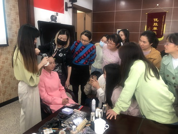 美妝課由資深化妝師陳婷婷老師主講。陳老師曾獲得多個國家頂級級別設計造型師、化妝師認證。老師講得細致、耐心,同學們聽得認真,投入。追求美、感受美是女同胞永恒的共同話題,似乎一轉眼就到了下課的時間。